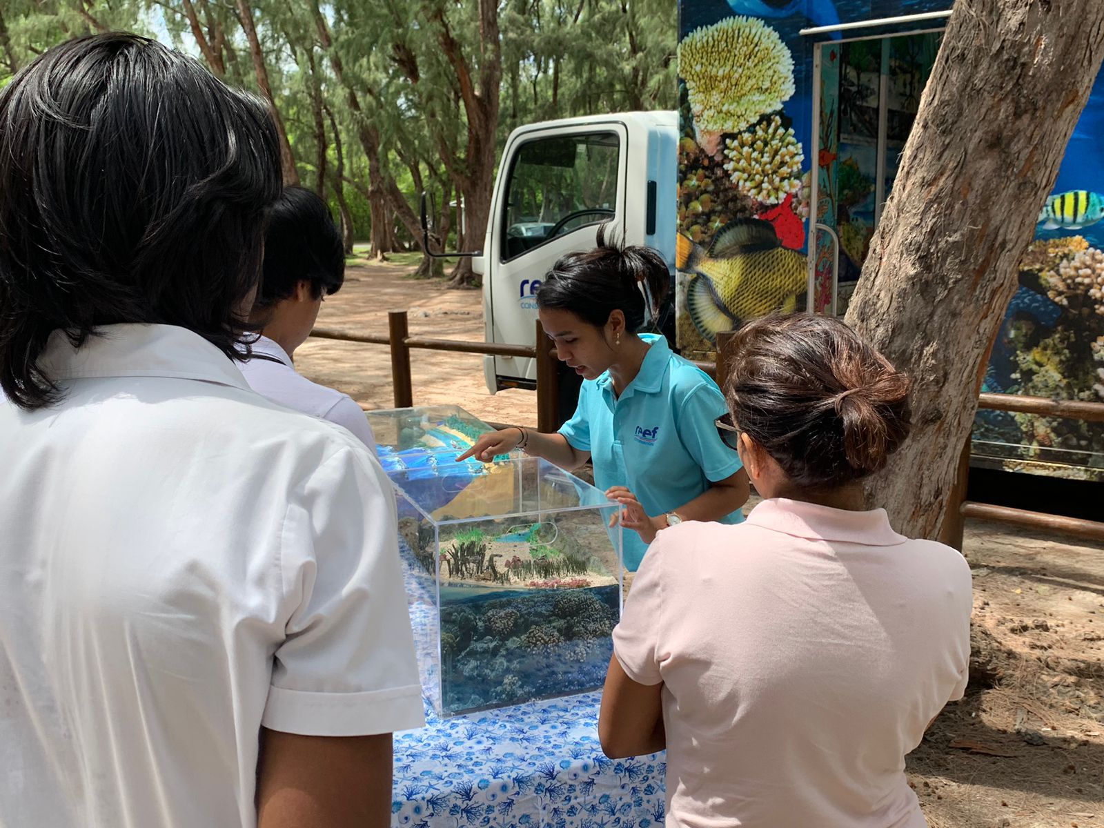 Bien que toutes les stratégies utilisées à Madagascar ne puissent pas être directement appliquées à Maurice, Reef Conservation a su les adapter afin d’optimiser la gestion du VMCA d’Anse La Raie. Inspirés par l’approche de leurs partenaires, les membres de l’association ont mis en œuvre une approche « de la crête au récif » impliquant la participation de tous : pêcheurs, propriétaires de bateaux, entrepreneurs privés et résidents locaux. Ces échanges ont été suivis par des consultations de la communauté pour identifier les pressions locales. Un problème majeur relevé par la population était le manque de poubelles pour les déchets. Pour y remédier, des lettres ont été rédigées et envoyées aux ministères concernés afin de résoudre cette problématique.