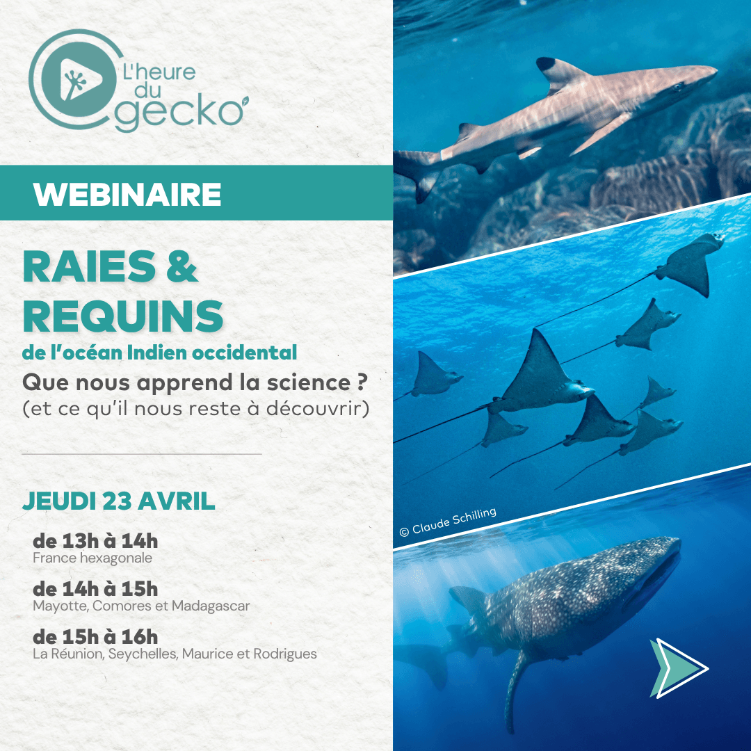Aujourd’hui encore, les raies et les requins constituent des animaux mal connus, parfois mal aimés. Ils jouent pourtant un rôle clé pour la biodiversité de l’océan Indien. Pour en savoir plus, ne ratez pas notre prochain webinaire L’heure du Gecko.